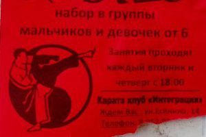 Каратэ Кобудо набор в группы мальчиков и девочек от 6 лет Занятия проходят в каждый вторник и четверг с 18:00 Карате клуб “Интеграйция” Ждем Вас: ул. Есенина, 14