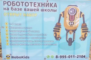 Робототехника RoboKids на базе вашей школы открыт набор 1-4 класс Маленькие группы Индивидуальный подход Новые Lego-наборы и ноутбуки Каждое занятие – новый робот Программирование, конструирование Основы физики, механики и математики RoboKids 8-995-011-2104