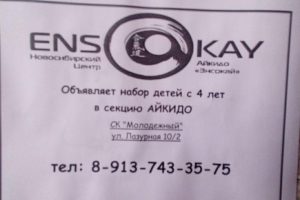 Новосибирский Центр Айкидо «Энсокай» Объявляет набор детей с 4 лет в секцию АЙКИДО СК “Молодежный” ул. Лазурная 10/2 тел: 8-913-743-35-75