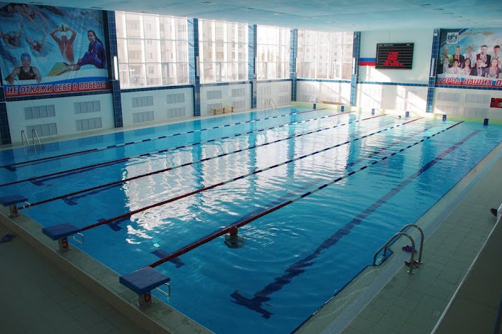 Размеры большой чаши бассейна — 25 на 16 м, 6 дорожек, глубина от 1,2 до 1,8 м. Размеры малой чаши бассейна, заниматься в которой удобно маленьким детям, беременным женщинам, пенсионерам и людям с ограниченными возможностями — 11 на 6 м, глубина — 1,3 м.