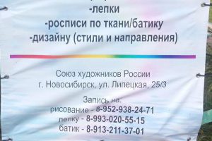 Студия творческого мастерства “Радуга” Приглашает взрослых и детей обучению профессиональным навыкам: – живописи – графики – лепки – росписи по ткани/батику – дизайну (стили и направления) Союз художников России г. Новосибирск, ул. Липецкая, 25/3 Запись на: рисование – 8-952-938-24-71 лепку – 8-993-020-55-15 батик – 8-913-211-37-01